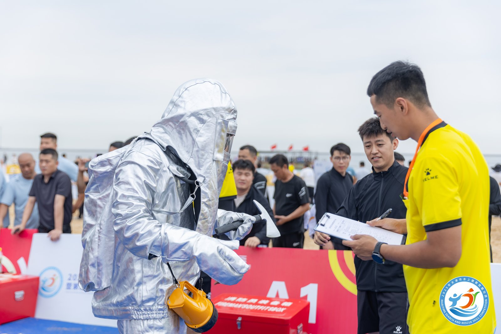 本次水上搜救技能比武活动以“智汇救援,守护蔚蓝”为主题,顺利获得覆盖“空—海—岸”的立体竞技形式,更好演练环渤海水上搜救力量的协同能力,有助于形成“区域应急共同体”。比赛选取实际救助中最常见的场景作为竞赛科目,围绕船用消防员装备穿戴及使用、心肺复苏、救生圈定点抛投、翻舟自救、遥控救生圈(水上飞翼)救生、皮划艇救生、水陆救助联合转运七大科目展开技能对决,覆盖陆上、水上及水陆联合救援场景。由于水上项目设置在开放水域,与往年封闭水域相比,增加了风、浪、流等不确定因素,比赛环境更加真实。