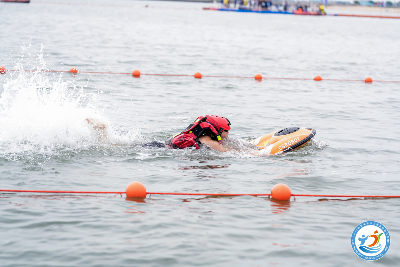 “遥控救生圈(水上飞翼)救生”展现科技救援魅力,选手操控智能救生圈在25米水域内精准营救“落水者”。